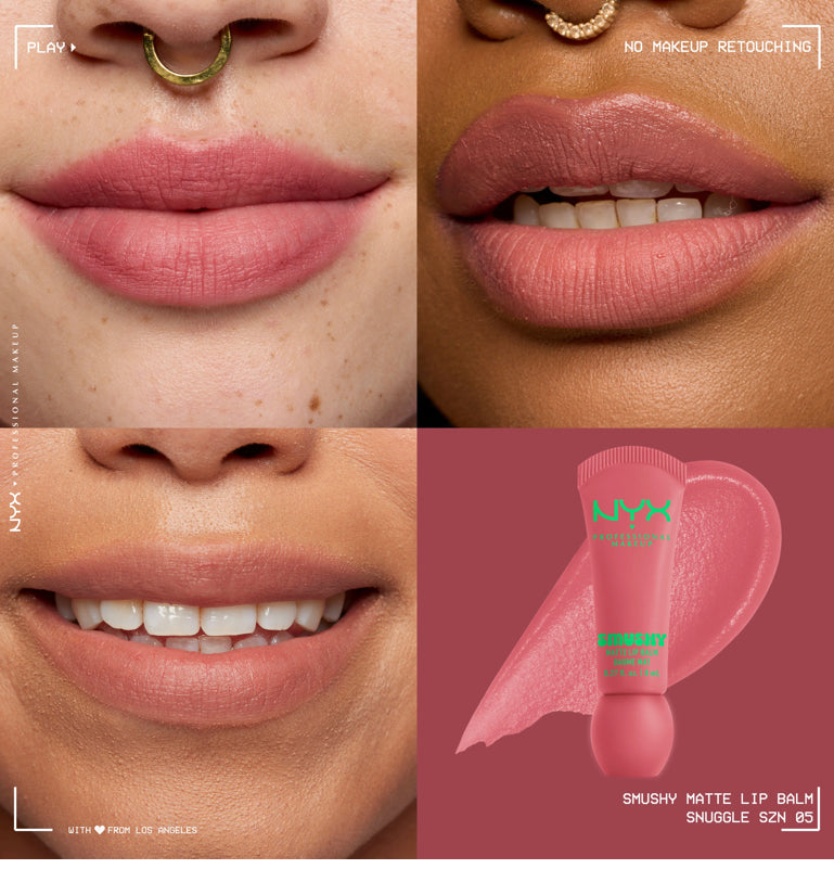 12 Craveable Shades: Just swipe on liquid lip balm for a perfect wash of buildable, soft-blur lip color with our blurring lip balm formula. Whether you're feeling a barely-there nude, a pop of vibrant pink, or a deep berry moment, Smushy Matte Lip Balm has you covered. Explore our range of 12 craveable shades designed for every mood and occasion.